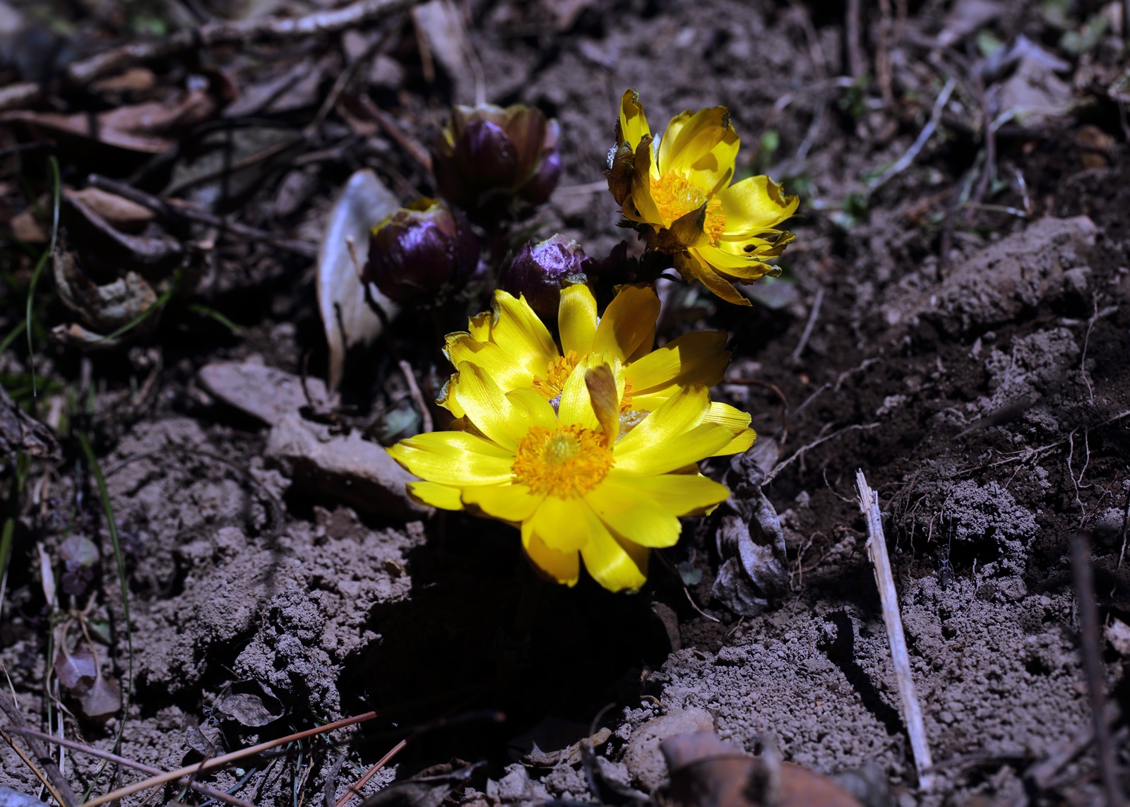 경주 감포 문무대왕면 야산에 강추위속에서 핀 복수초.(2023,01,29,)