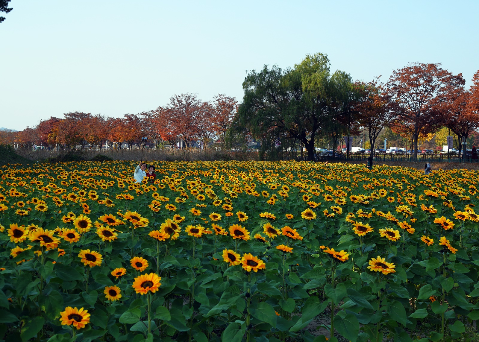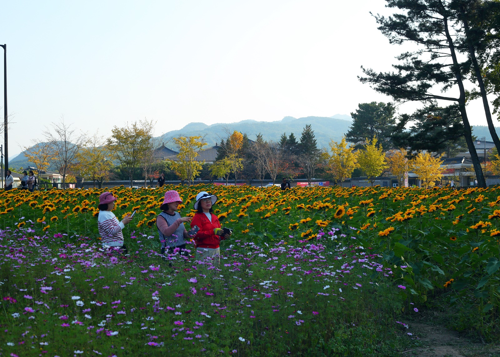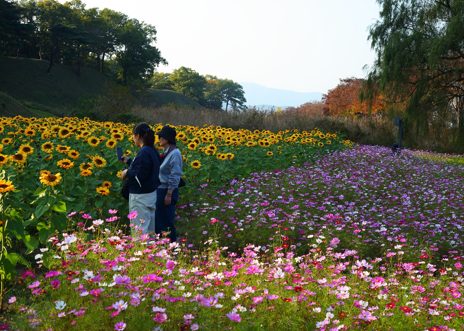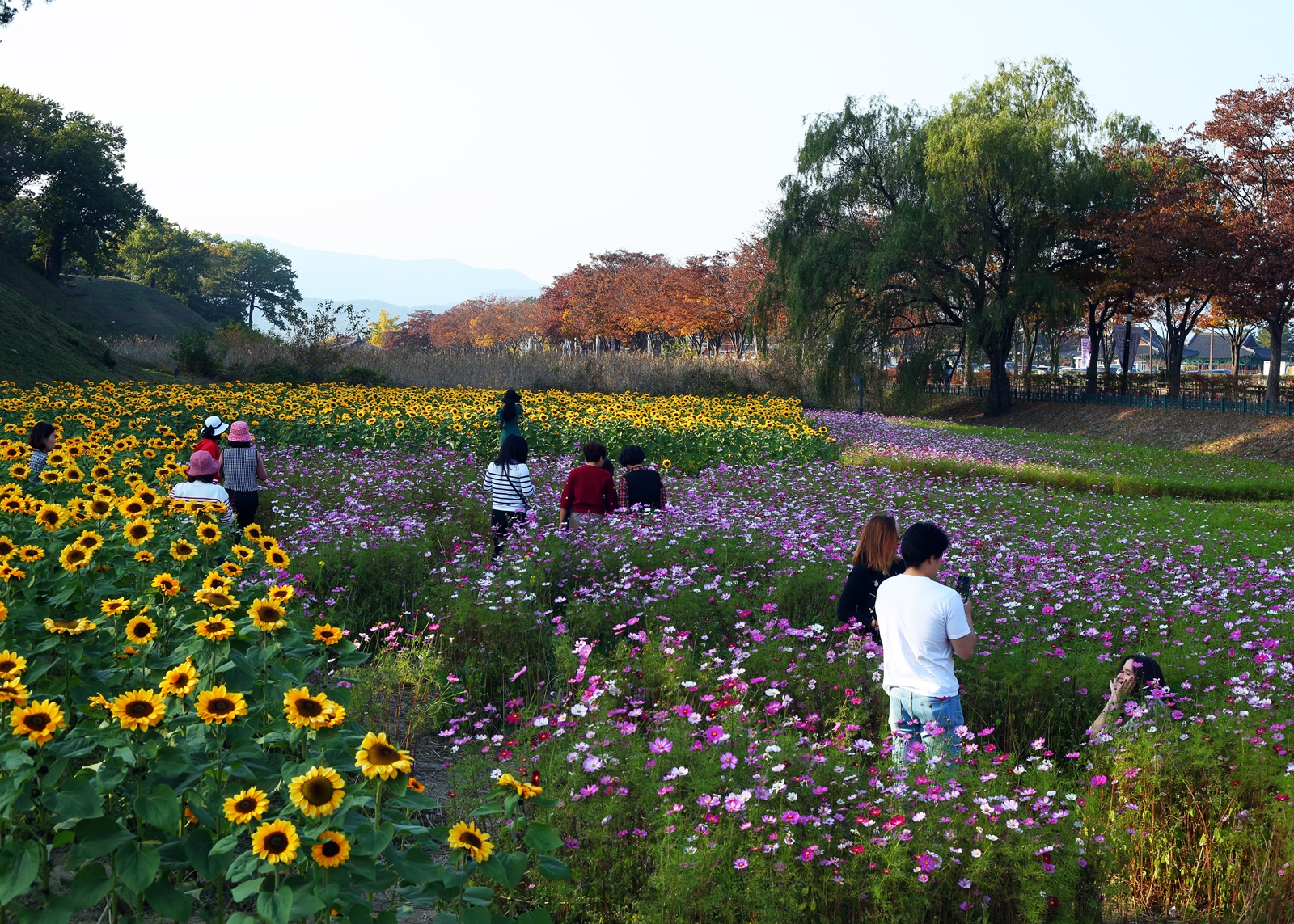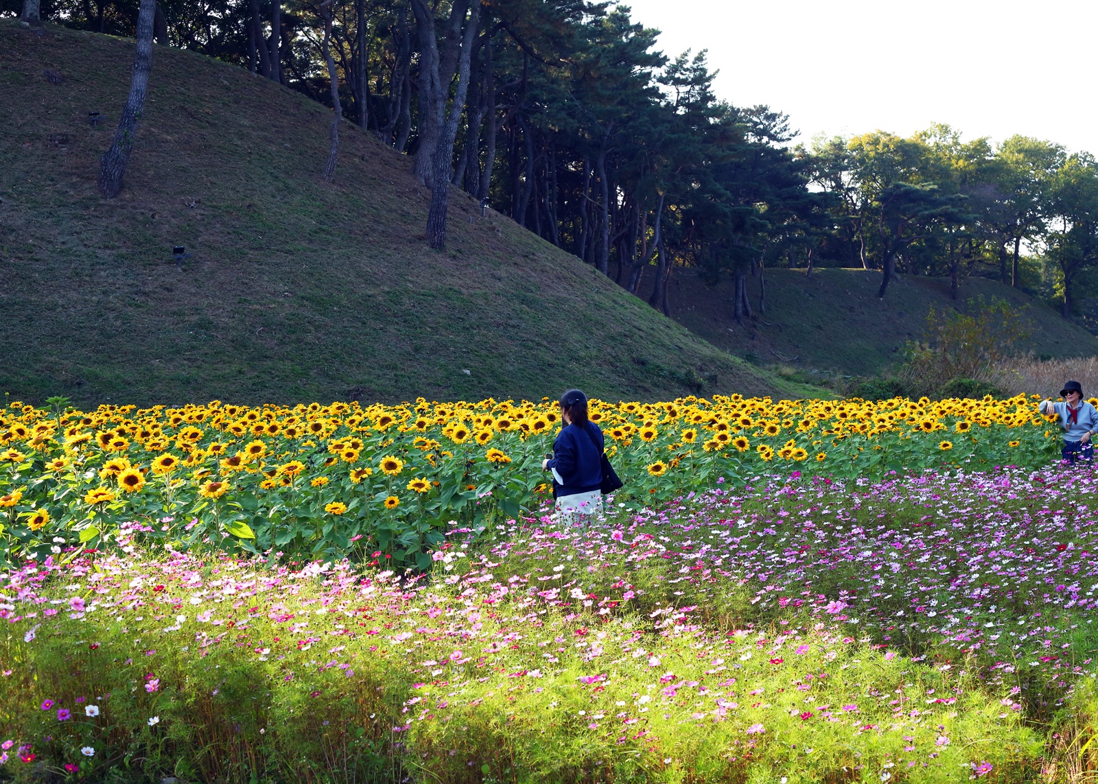 경주 반월성에 해바라기와 코스모스가 만개하여 관광객이 즐거워 하고있다. 2023,11,01,촬영.
