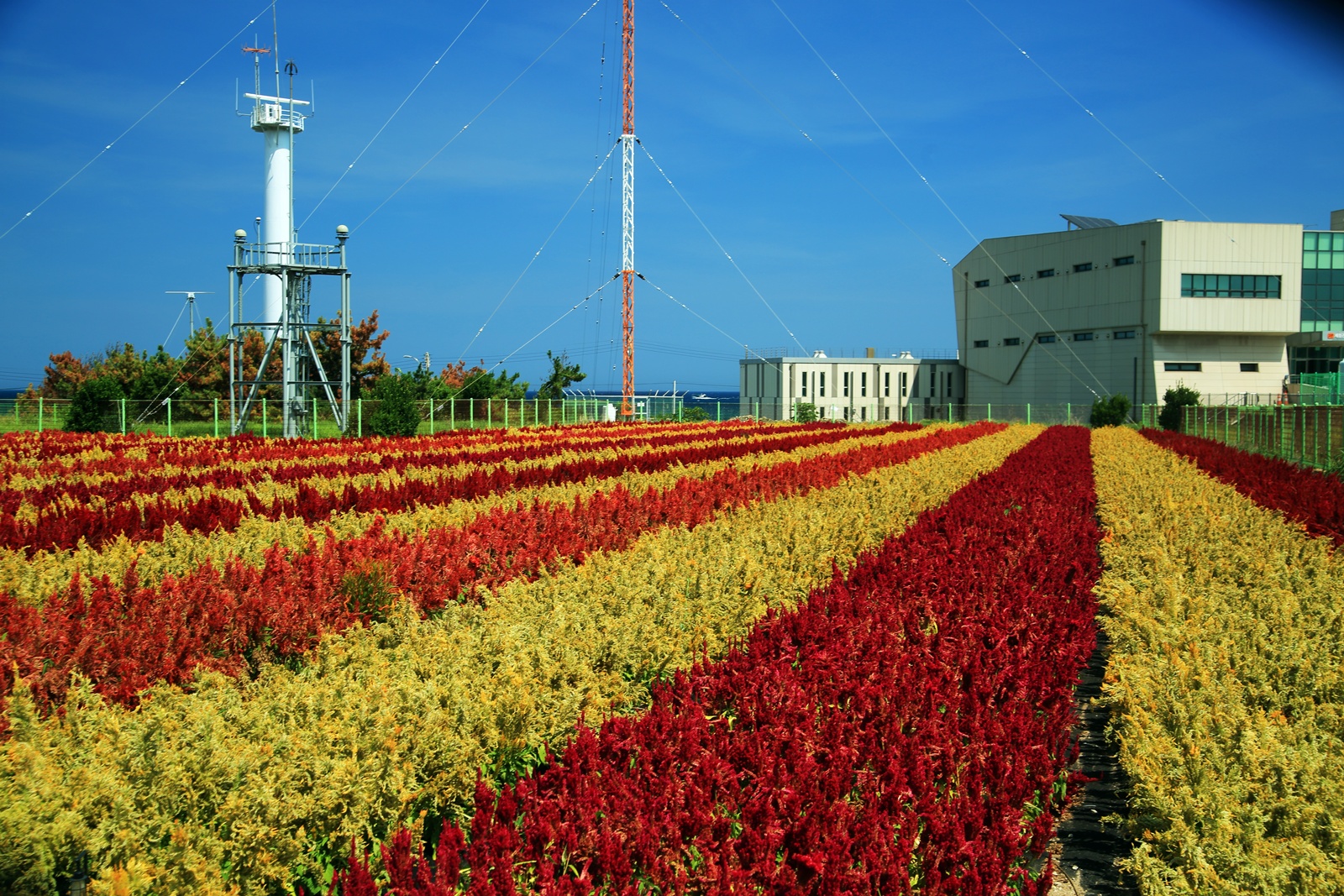 포항 호미곶 새천년 공원에 조성된 맨드라미 꽃밭.
